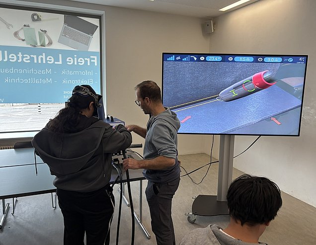 Beim virtuellen Schweissen war eine ruhige Hand gefragt um möglichst viele Punkte in der Auswertung der Schweissnaht zu erhalten.