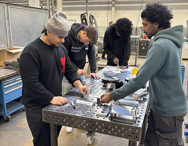 Nach einer kurzen Vorstellung der Metallbauberufe bauten die Schülerinnen und Schüler mit ihren Lehrpersonen in der Werkstatt ein Racletteöfeli zusammen und schweissten ein Namensschild. Im Technischen Büro wurde ihnen der Beruf Metallbaukonstrukteur/in EFZ mit dem CAD in 3D vorgestellt und anhand diverser Musterstücke der Metallbau näher gebracht.